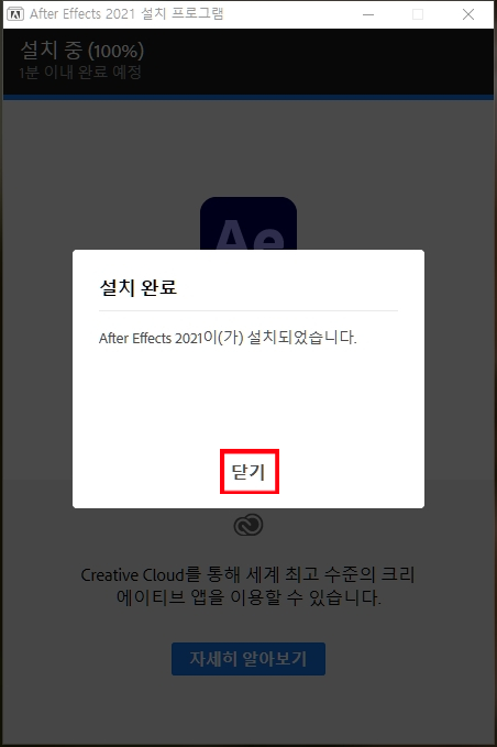어도비 애프터이펙트 cc 2021 설치 및 정품 인증을 받을 수 있습니다.