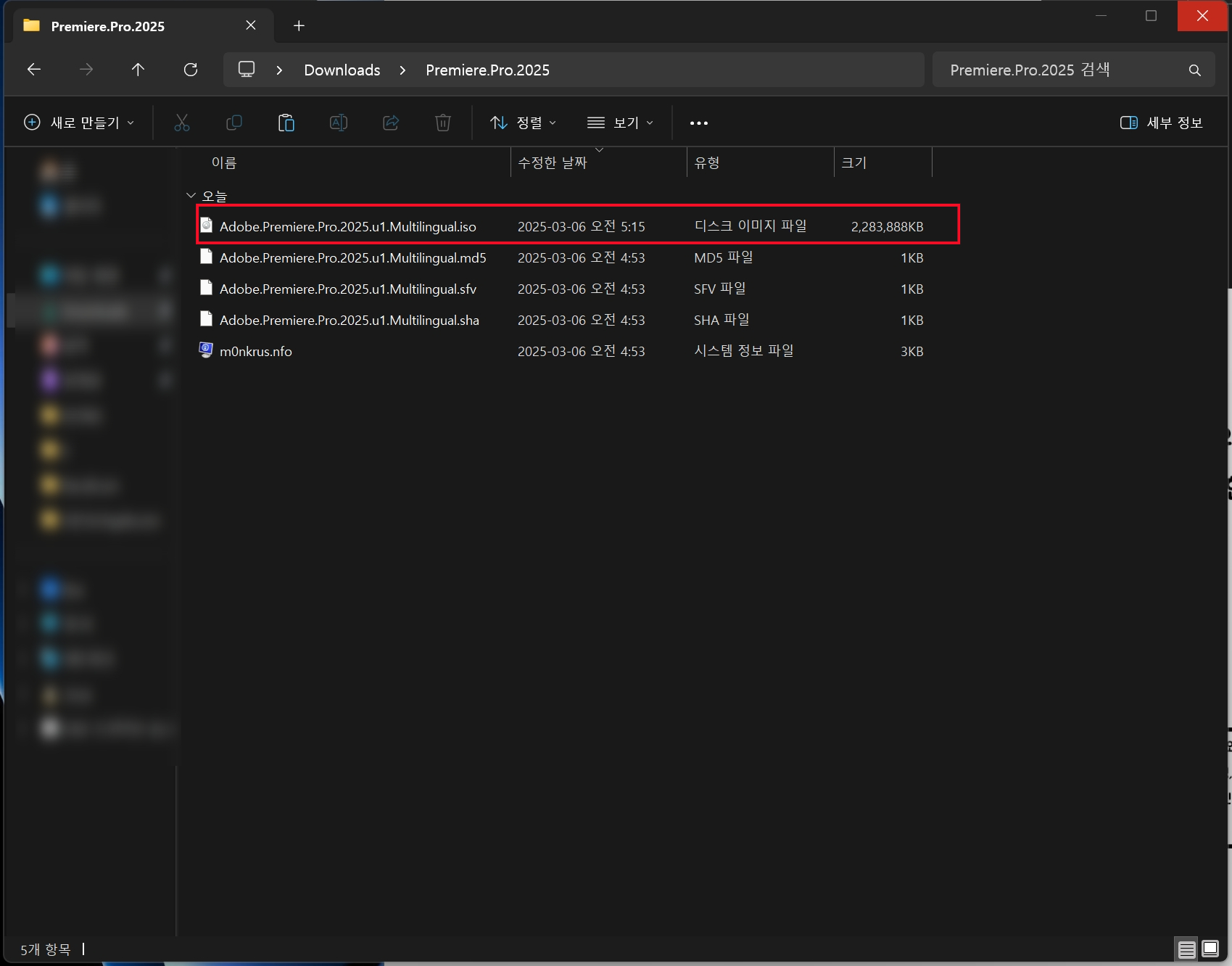 - 압축 해제 후 [Adobe.Premiere.Pro ~ .iso] 파일을 실행하세요.